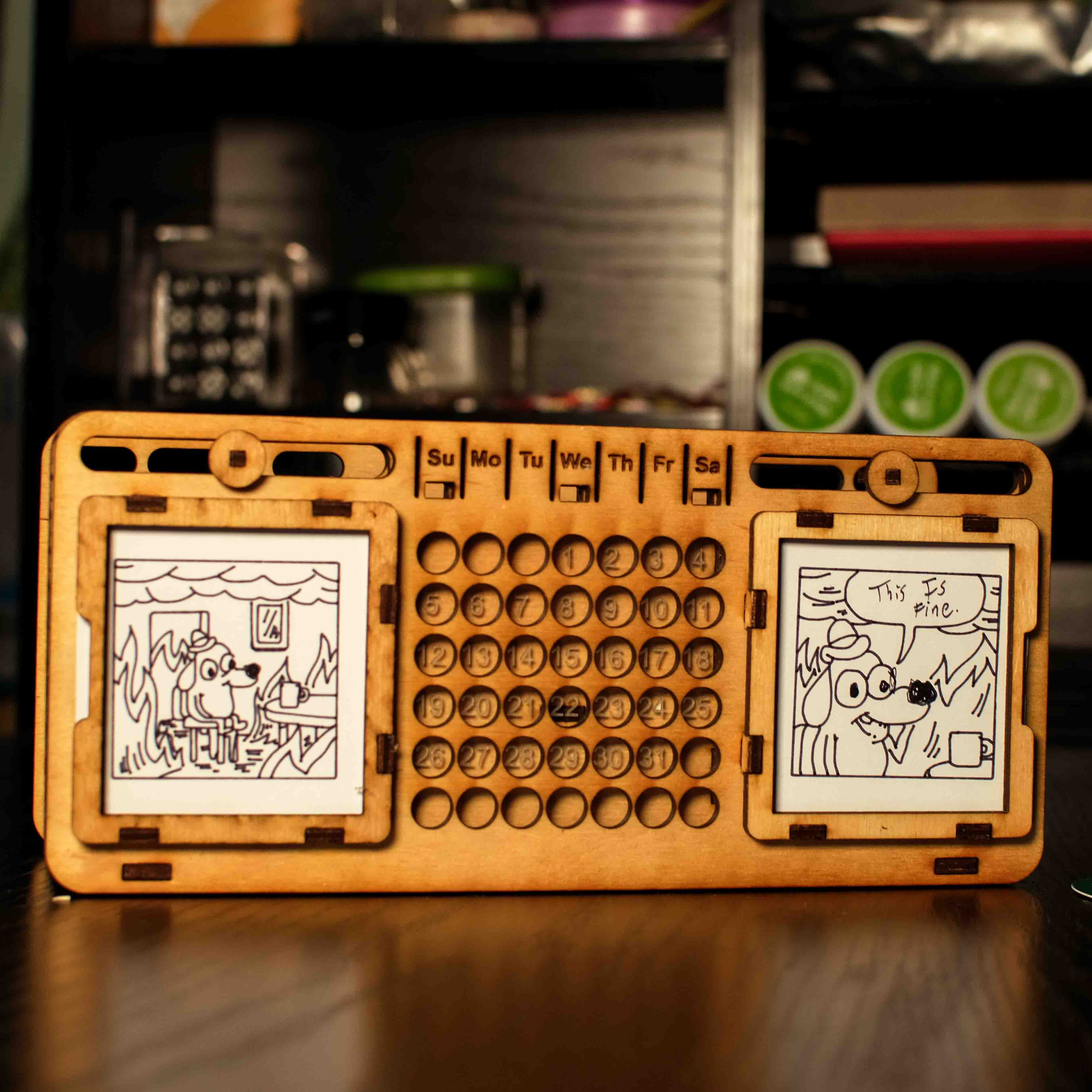 Desktop organizer featuring compartments for pens and pencils, perpetual calendar, and flame notecards to accompany every professional's favorite meme.